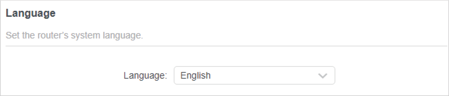The the router’s default system language is English. When changed, the router’s settings on web management will appear in another language.