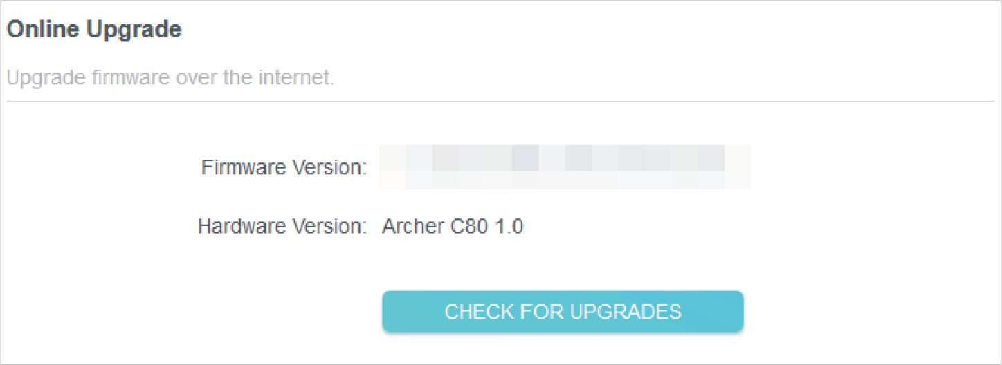 will display in the top-right corner of the page. Click the icon to go to the Firmware Upgrade page. Alternatively, you can go to Advanced > System > Firmware Upgrade, and click CHECK FOR UPGRADES to see whether the latest firmware is released. If there is new firmware click UPGRADE.