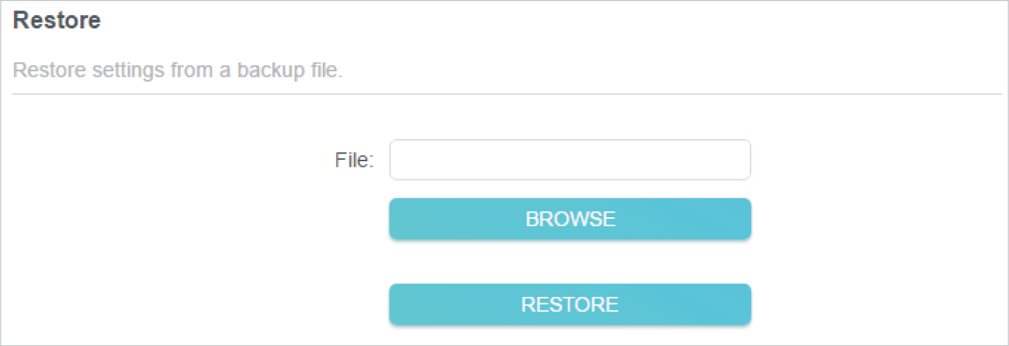 Click BROWSE to locate the backup configuration file stored on your computer, and click RESTORE.