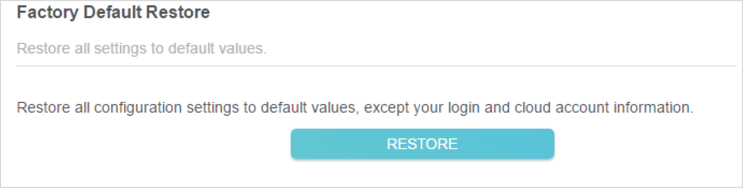 In the Factory Default Restore section, click RESTORE.