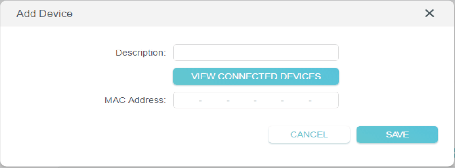 Click VIEW CONNECTED DEVICES and select the device to manage the router from the Connected Devices list, or enter the MAC address of the device manually.