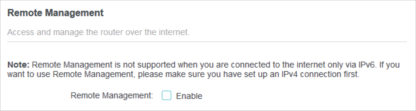 Go to Advanced > System > Administration and complete the settings in Remote Management section as needed.