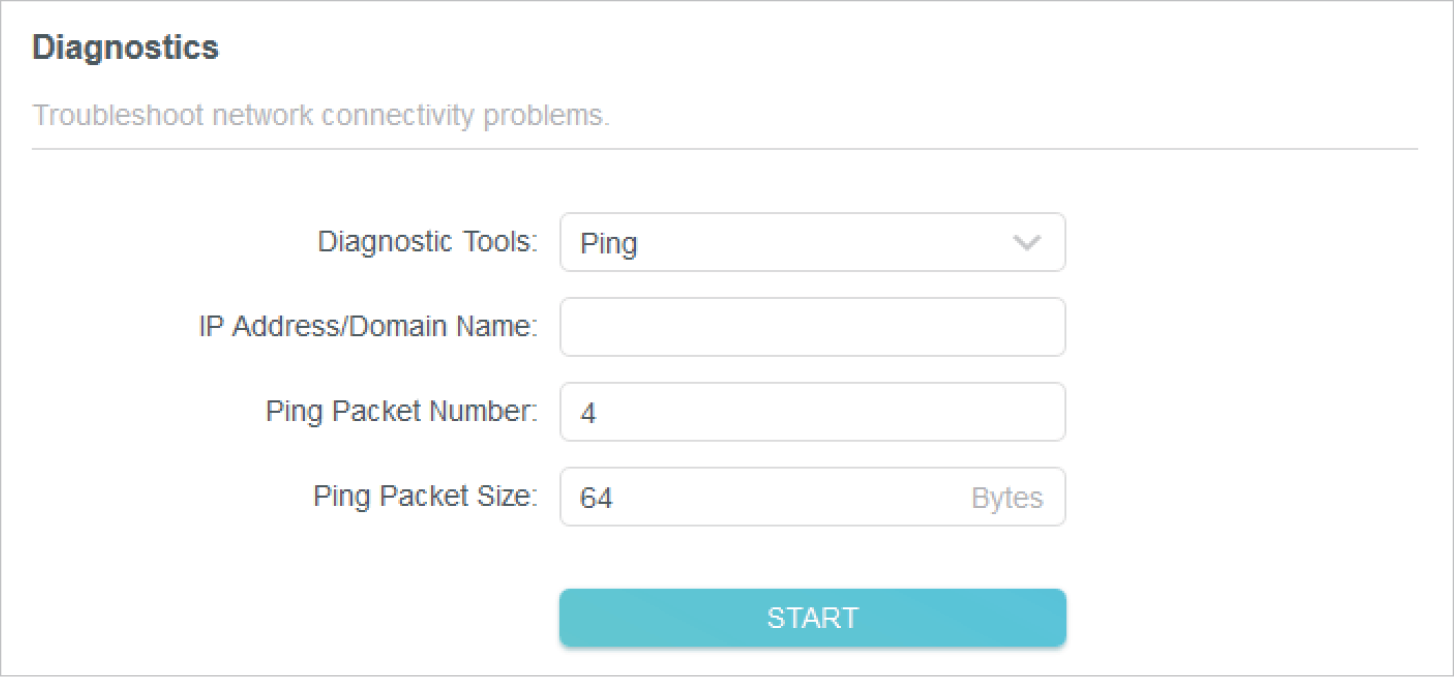 Diagnostics is used to test the connectivity between the router and the host or other network devices.