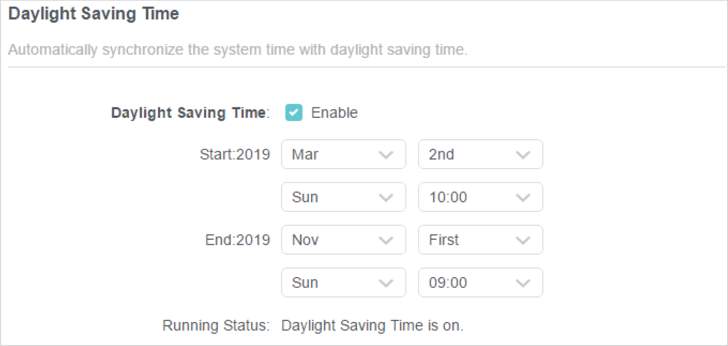 Tick the Enable box of Daylight Saving Time.