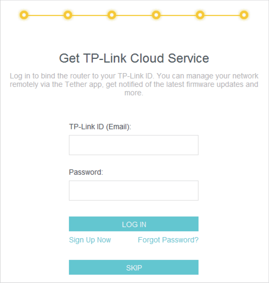 If you do not want to register a TP-Link ID now, you may click Skip to proceed.