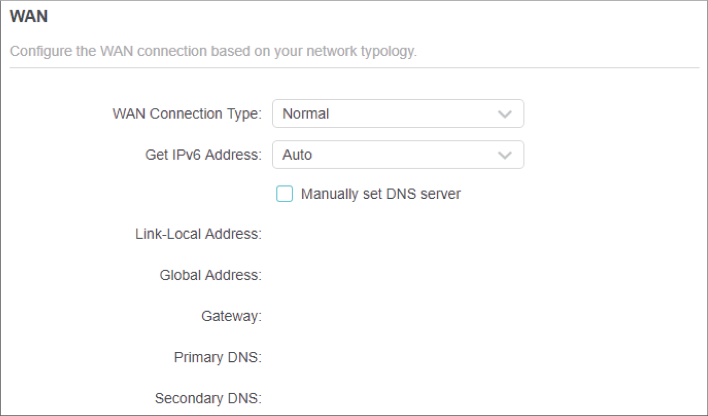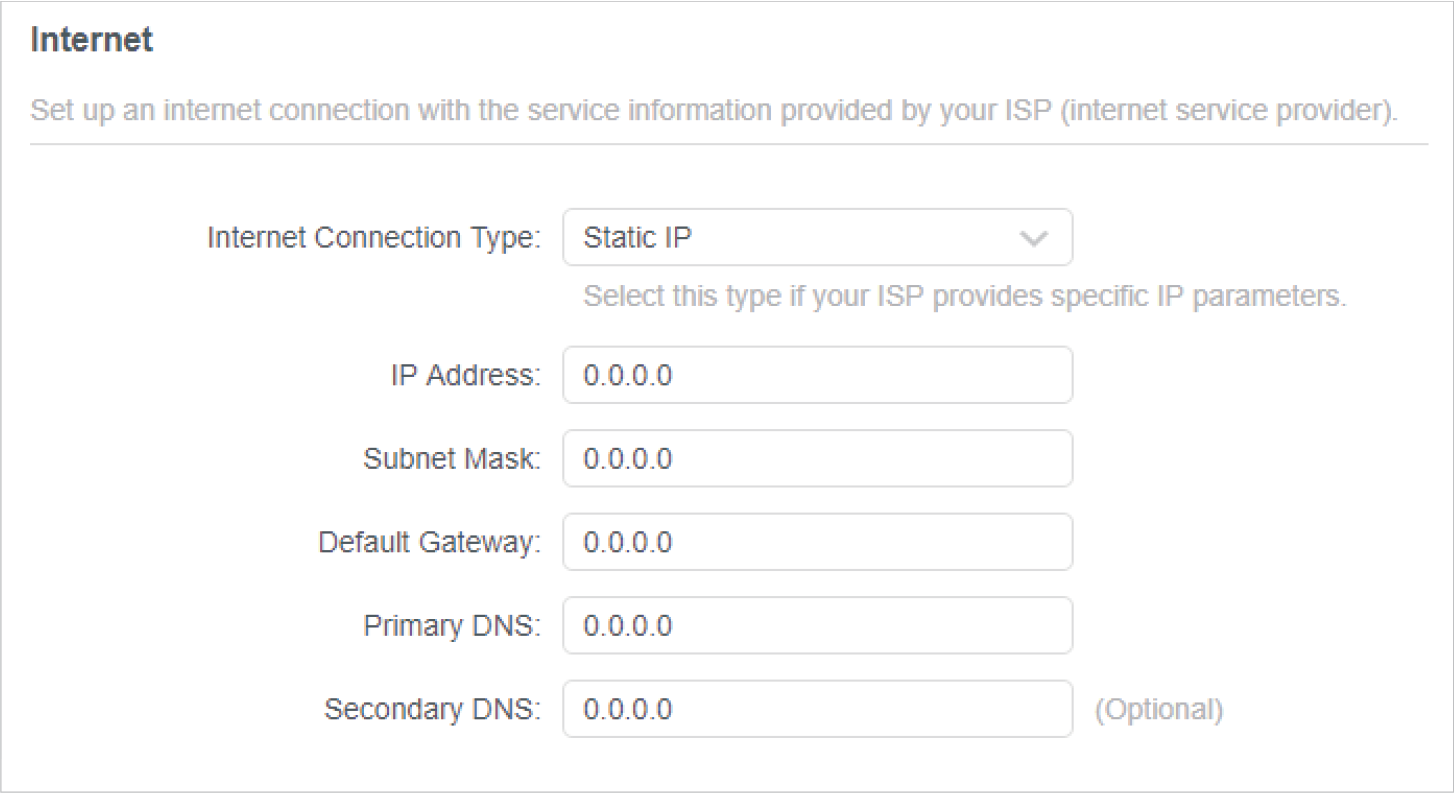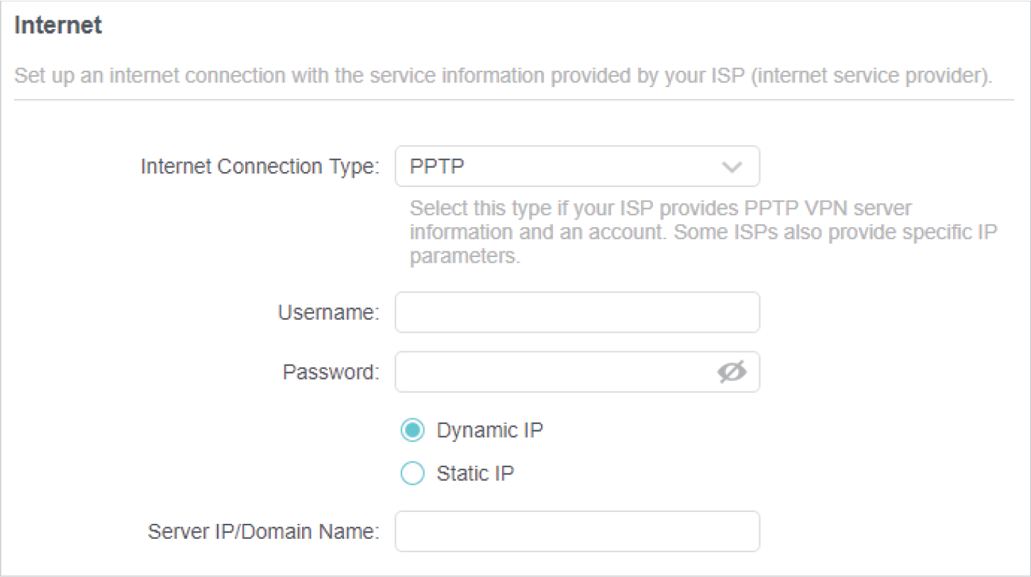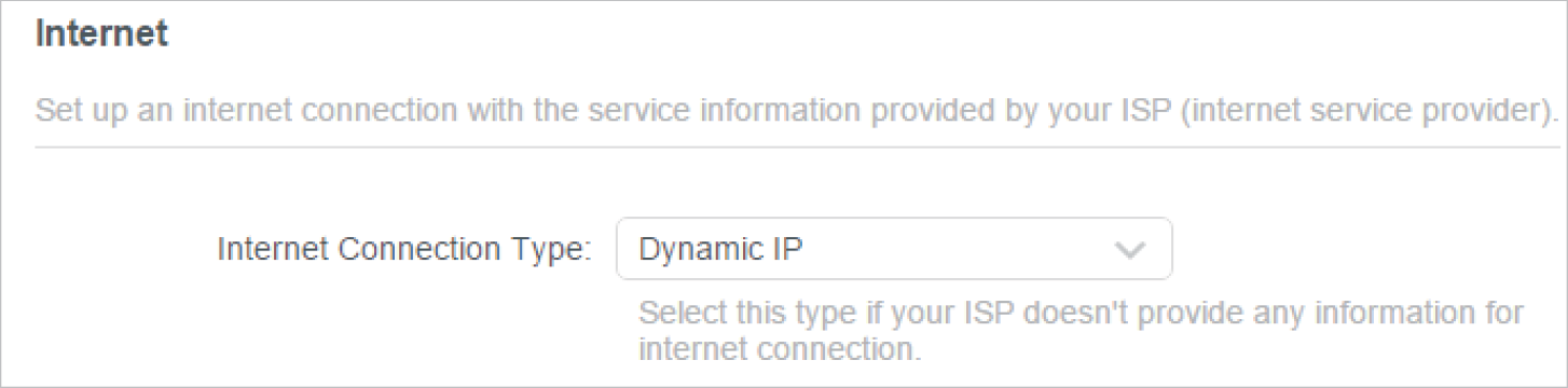 If you use Dynamic IP and PPPoE and you are provided with any other parameters that are not required on the page, please go to Advanced > Network > Internet to complete the configuration.
