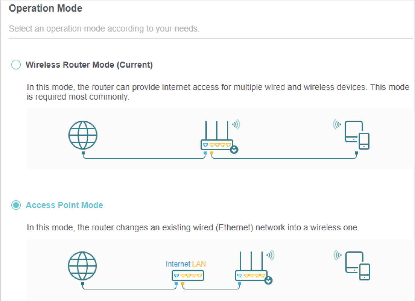 Select Router mode.
