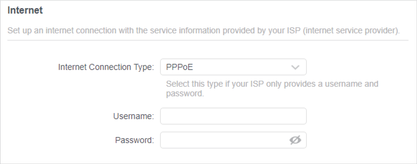 If you choose PPPoE, enter the username and password provided by your ISP. PPPoE users usually have DSL cable modems.